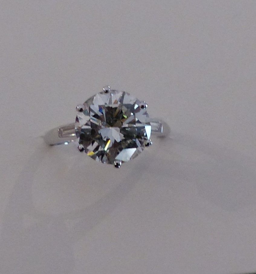 Bague platine diamants taille brillant 4 cts 07 MVS2 certifié et diamants taille baguette.