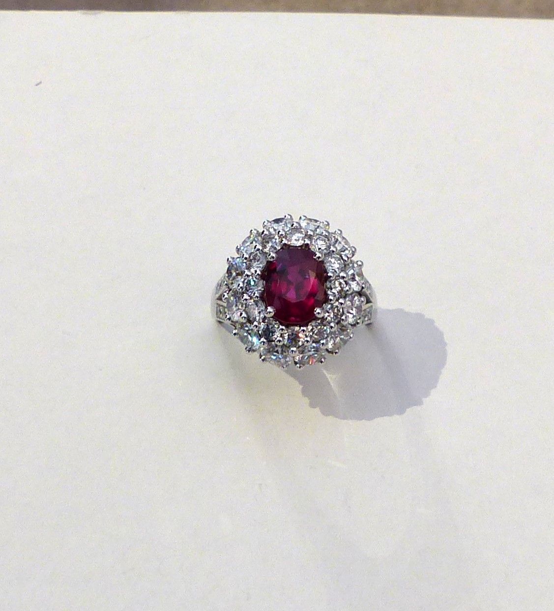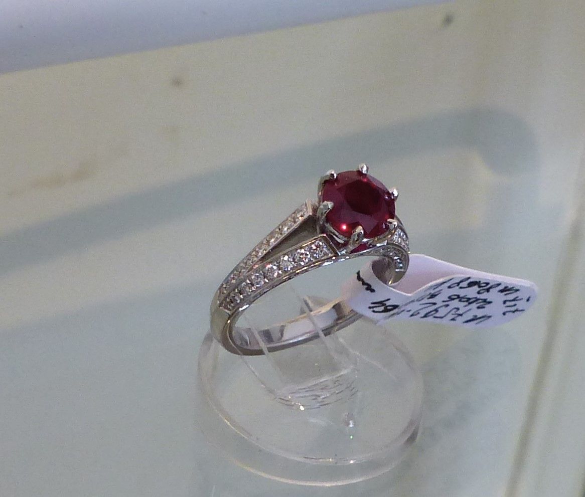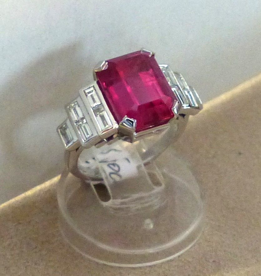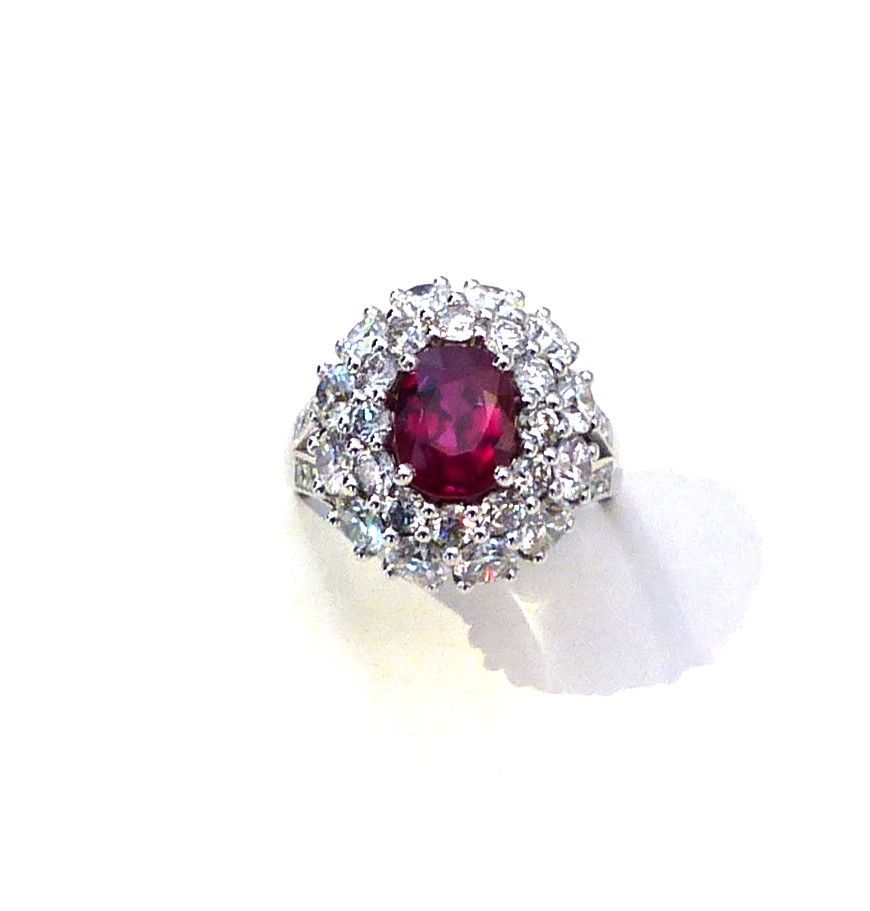 Bague or blanc Rubis 1ct89 Siam certifié CGL début XXs et diamants 3cts05. Px: 25000 euros.