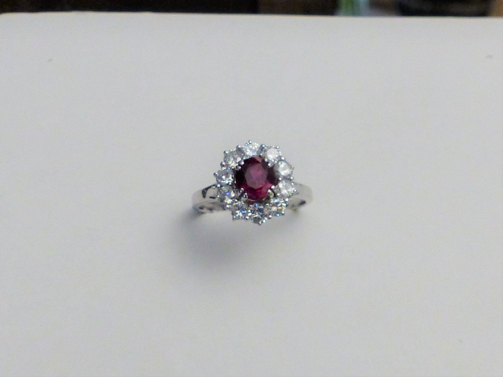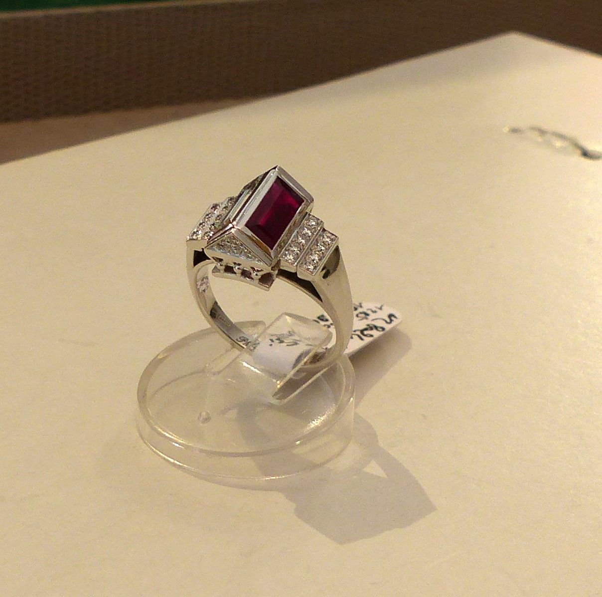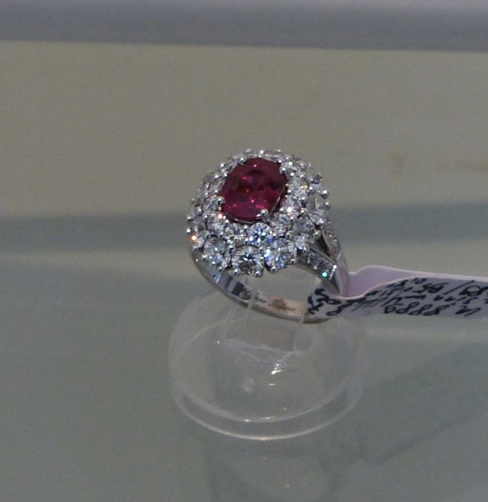 Bague or blanc Rubis 1ct89 Siam certifié CGL début XXs et diamants 3cts05. Px: 25000 euros.
