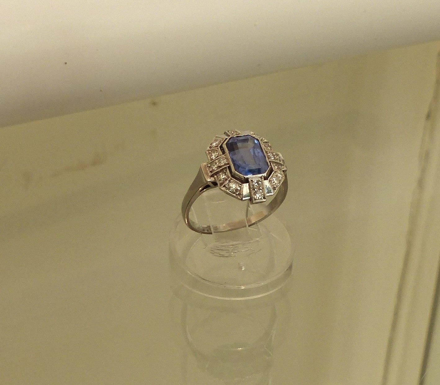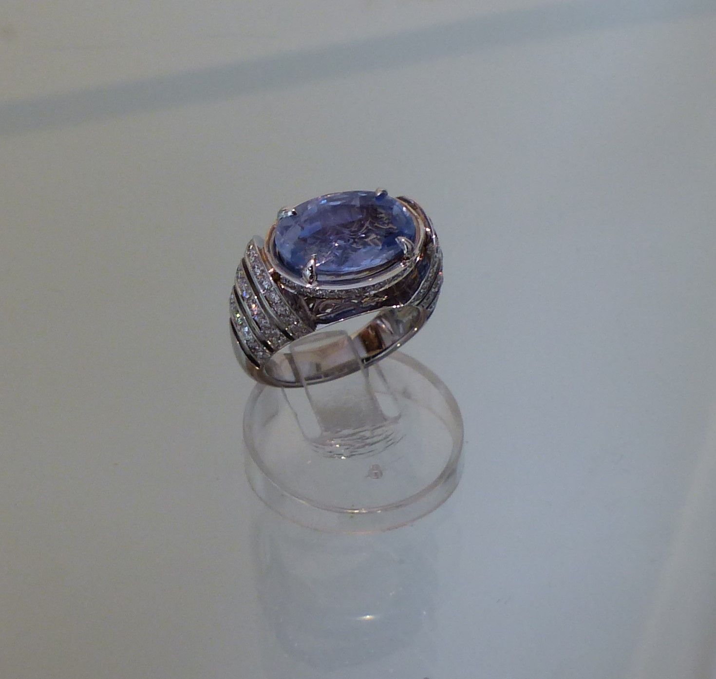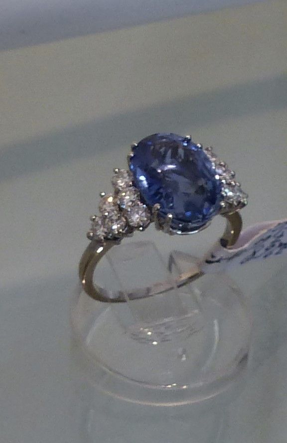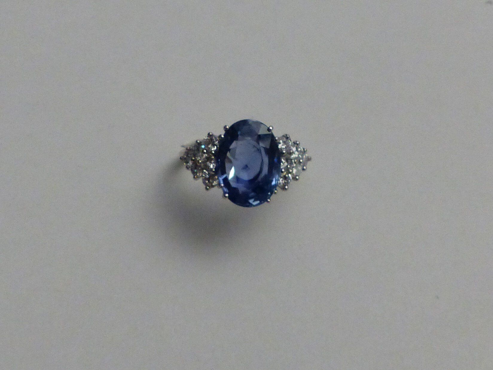 Bague or blanc Saphir de Ceylan 4cts40 certifié CGL et diamants. Px: 13500 euros.