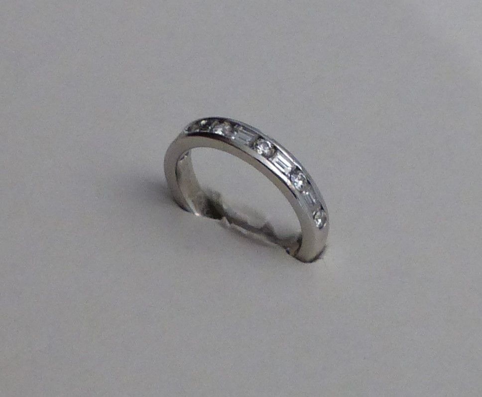 Alliance platine TIFFANY sertie de diamants taille baguette et brillant