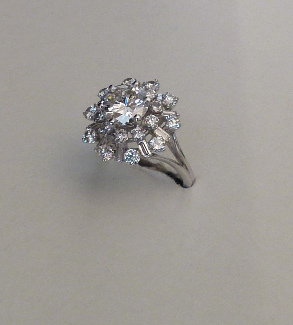 Bague or blanc diamants - Au centre 1ct84 ESI2 certifié LFG-Année 70.