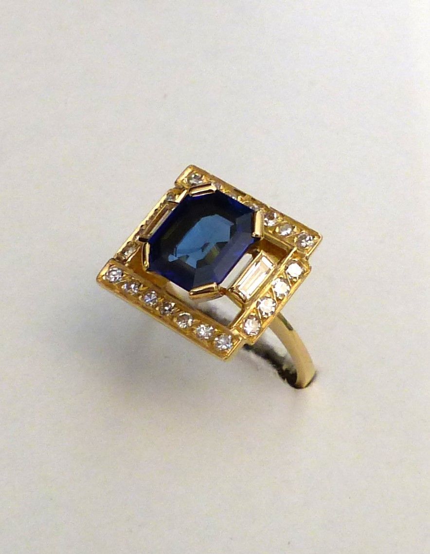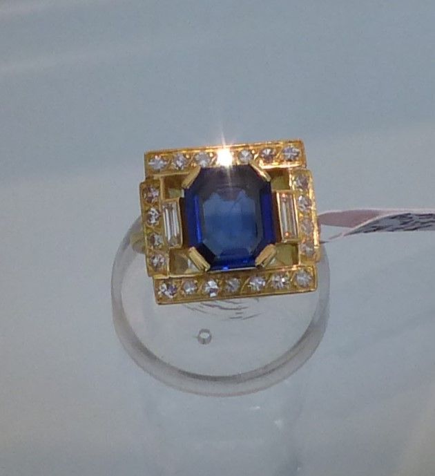 Bague or jaune Saphir de Ceylan naturel certifié environ 3 carats17 et diamants. Vintage. Px: 15000 euros.