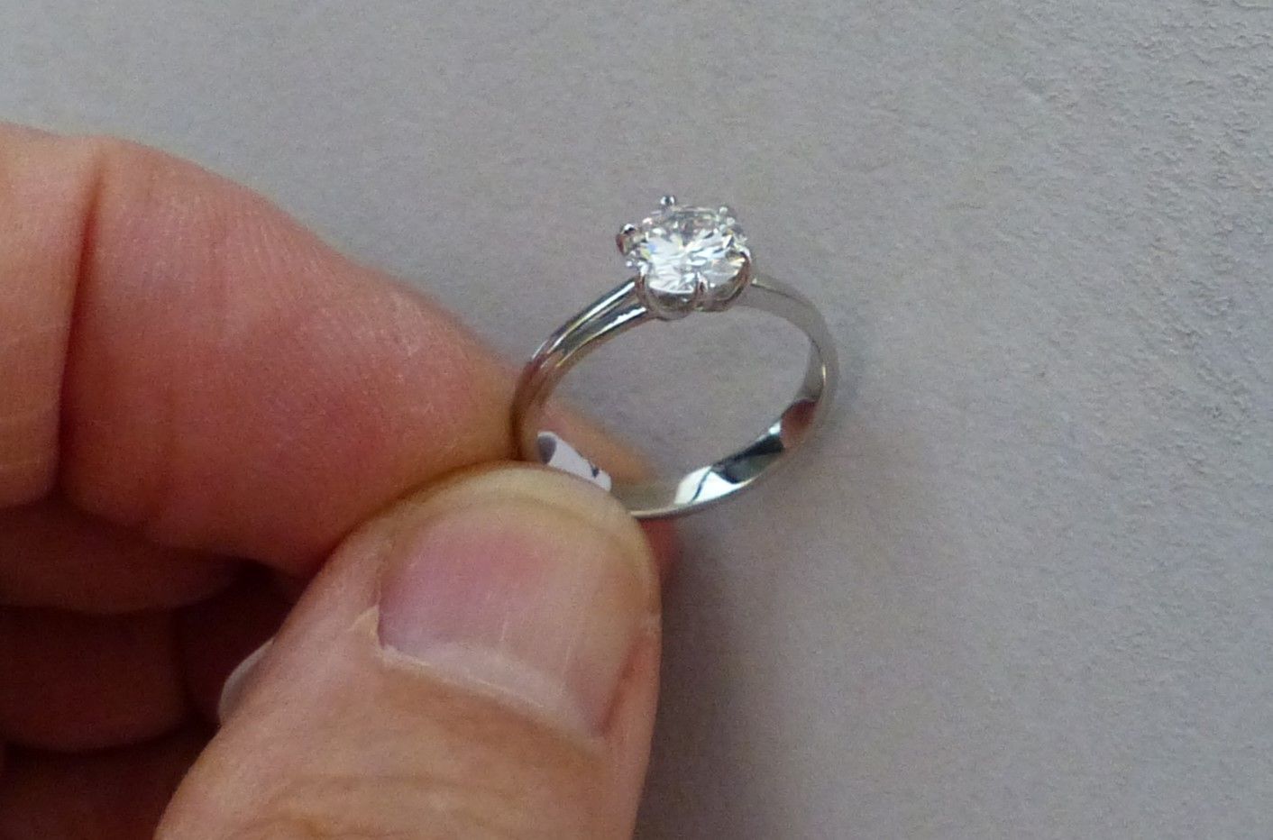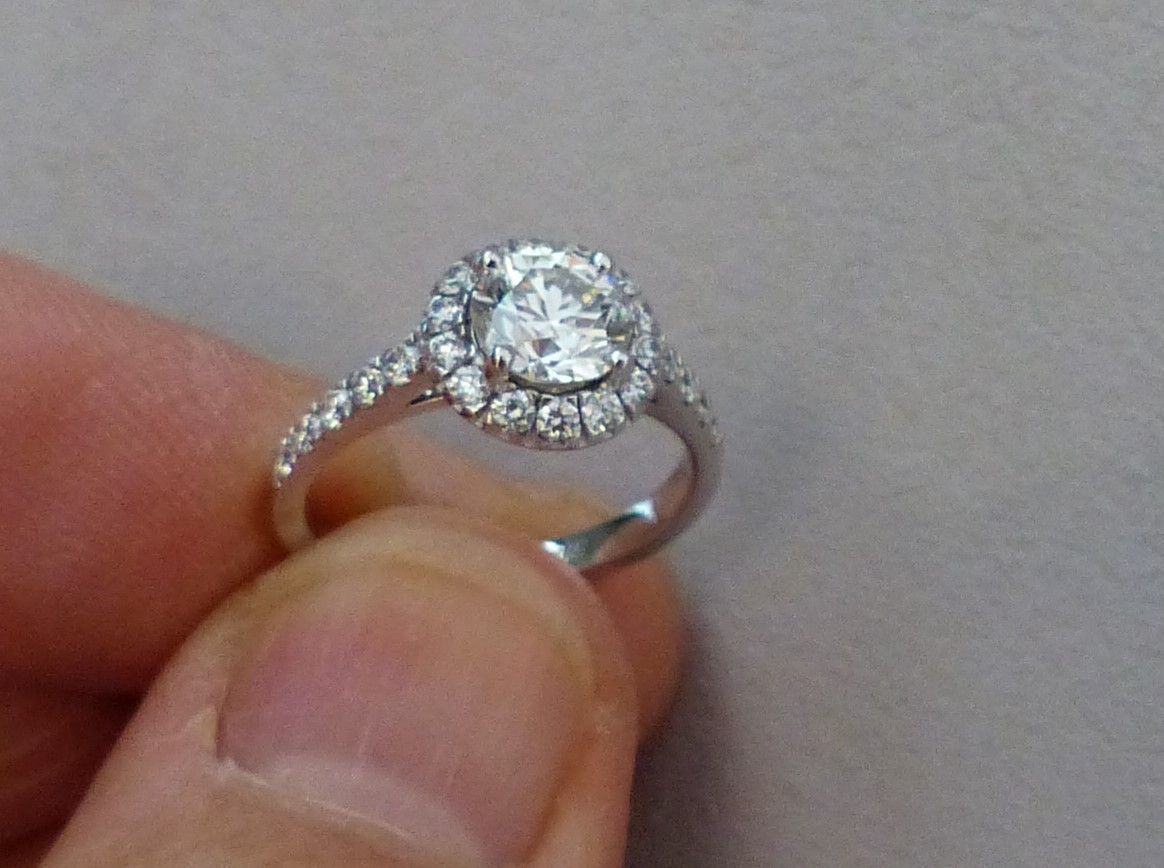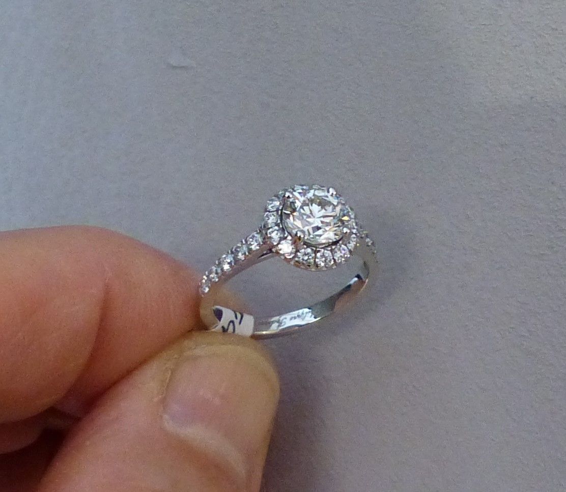 Bague solitaire or blanc diamant taille brillant 1ct06 HVS1 certifié LFG.