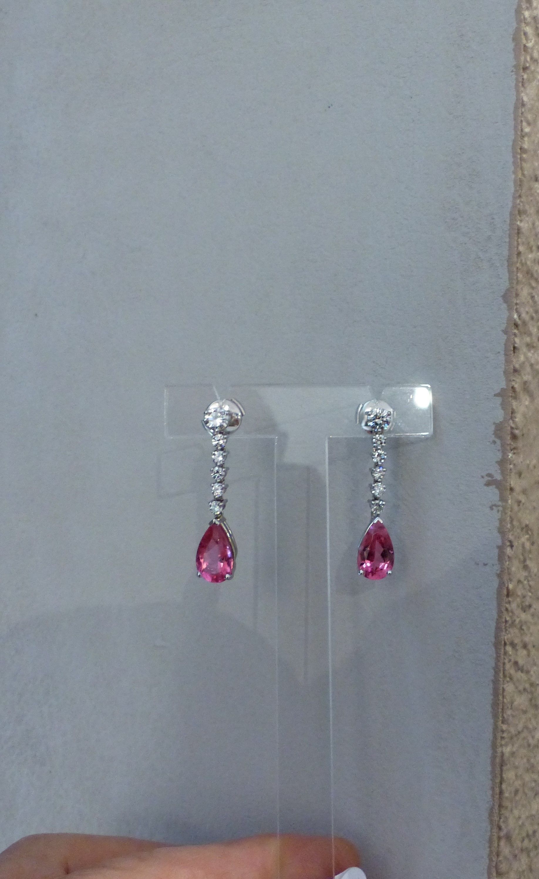 B oreilles : Très belles tourmalines roses et diamants. Certification CGL sur tourmalines 4cts55 taille poire.