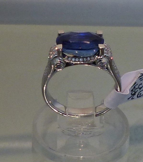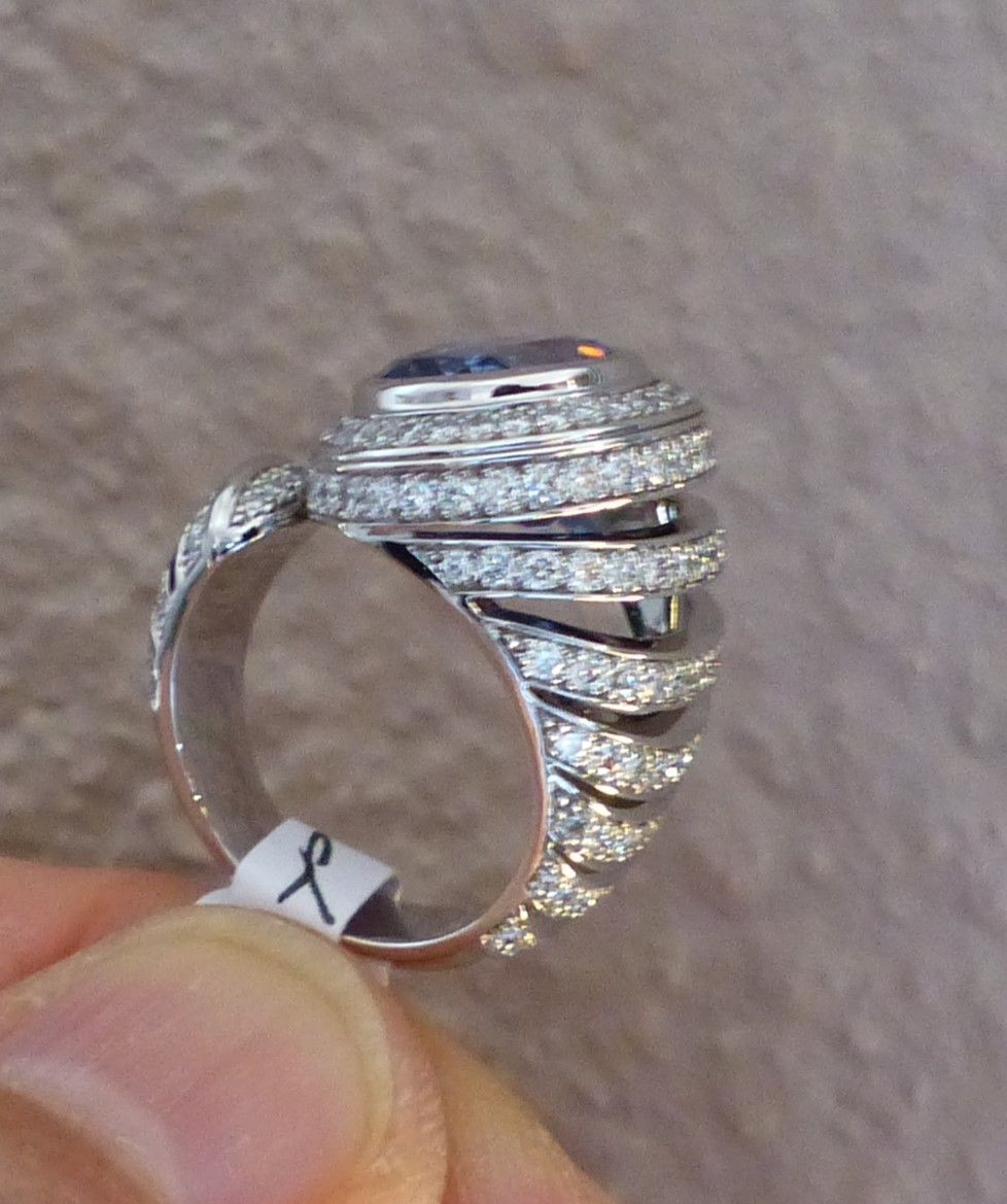 Bague or blanc Saphir 7cts66 de Ceylan naturel certifié CGL et diamants 1ct30. Px: 25000 euros.