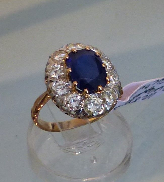 Bague or jaune or blanc Saphir Ceylan naturel 2 cts50 certifié et diamants. Px: 12000 euros.