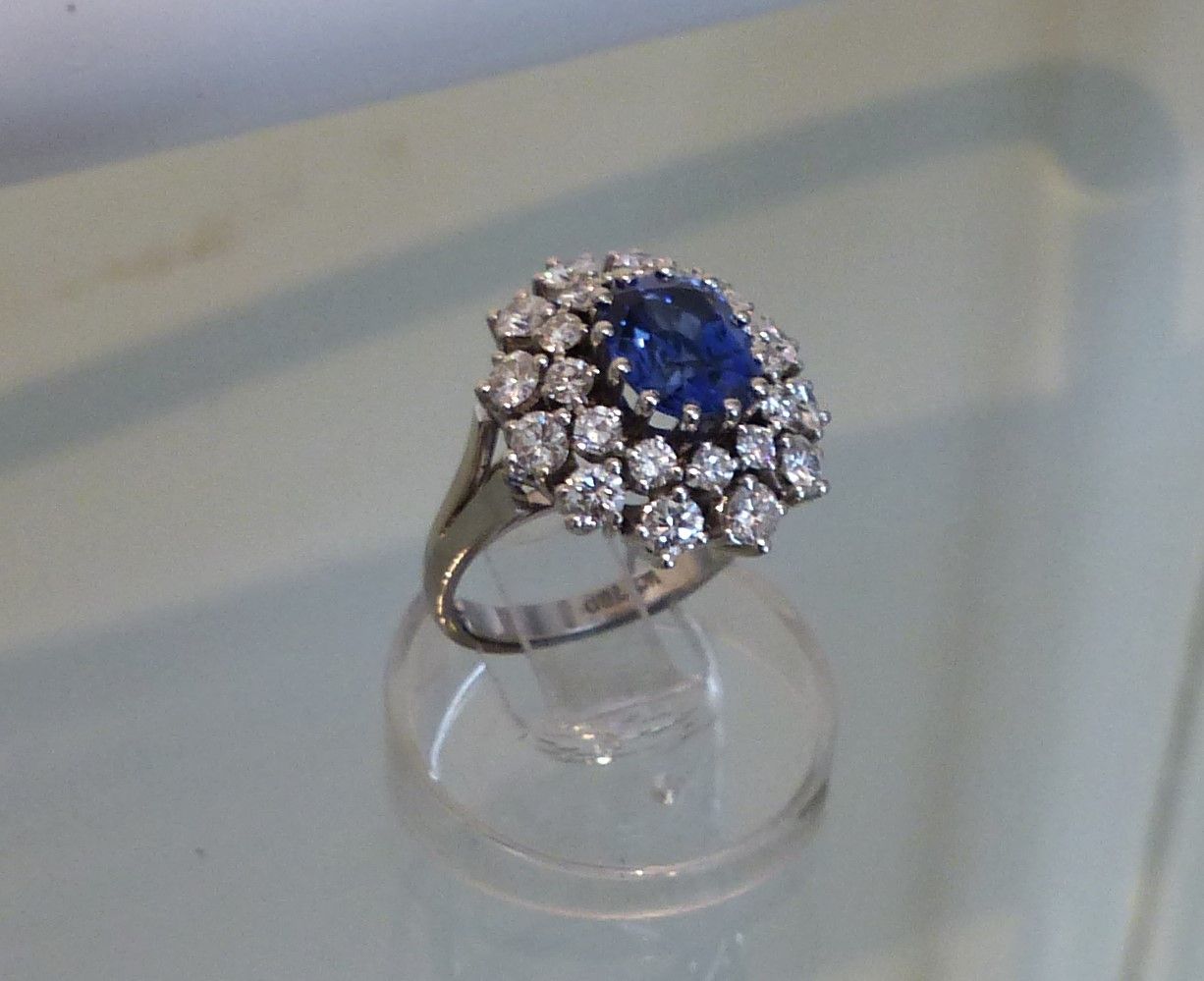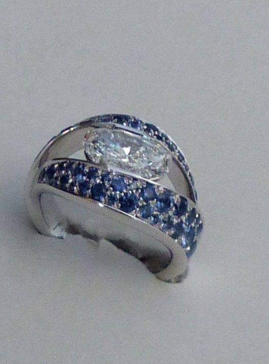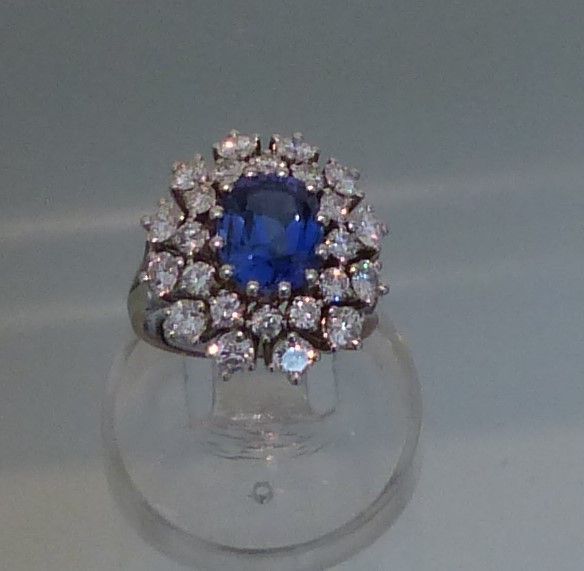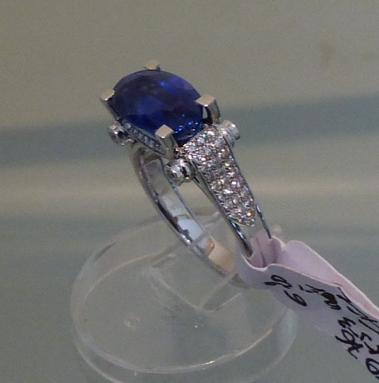 Bague or blanc Saphir 2cts50 de Ceylan naturel certifié CGL et diamants 1ct35. Px: 15500 euros.