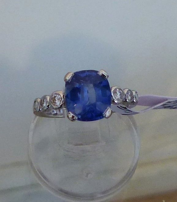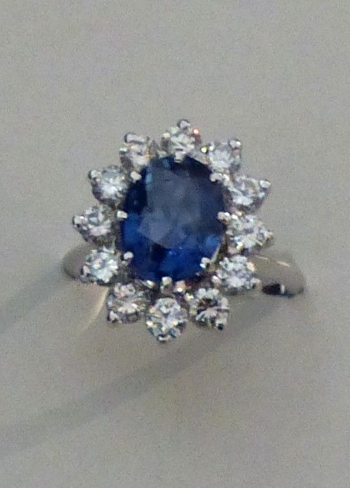 Bague or blanc Saphir de Ceylan 2cts10 naturel certifié CGL et diamants 1ct92. Px: 9100 euros.