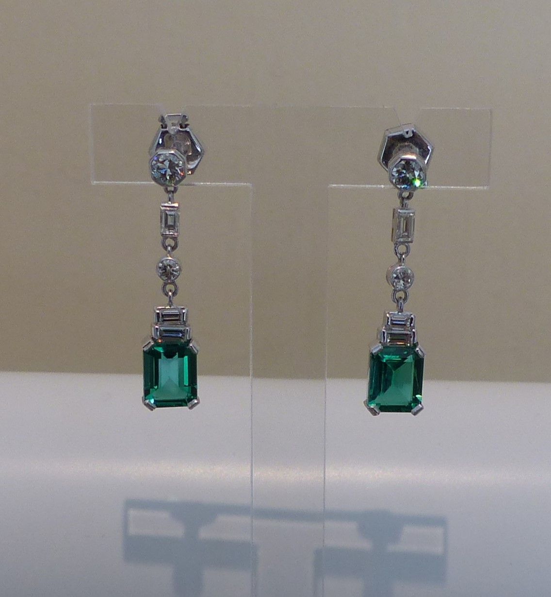 B oreilles art déco émeraudes et diamants vue de profil.
