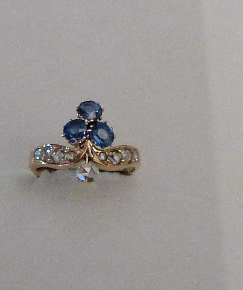 Bague tiare or jaune saphirs diamants , fin XIXe s.