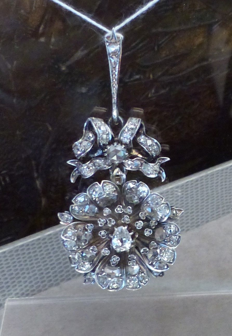 Pendentif broche or et argent diamants vers 1860/1870.