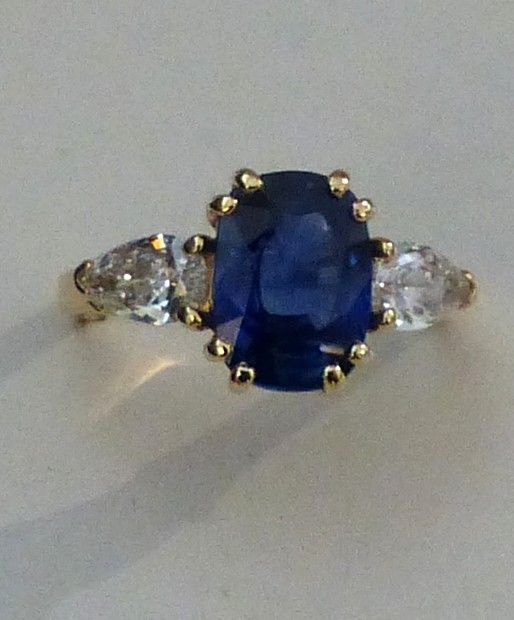 Bague or jaune Saphir de CEYLAN -Certificat CGL - diamants taille poire.