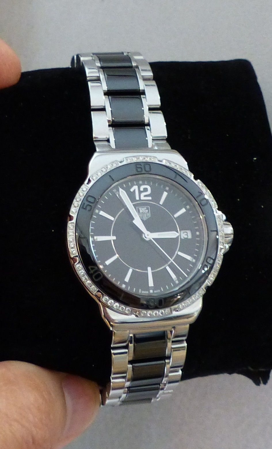 TAG HEUER dame diamants quartz acier et céramique.Vintage.